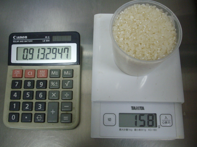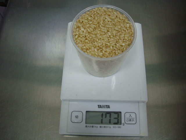 岩船コシヒカリはこの専用200mlカップ一杯で計量すると173gでした。